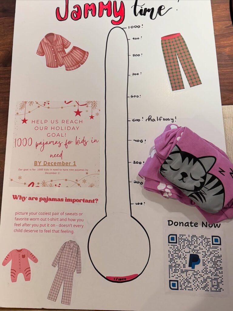 Recent Pajama drive at a local high school, “fill those bins!”